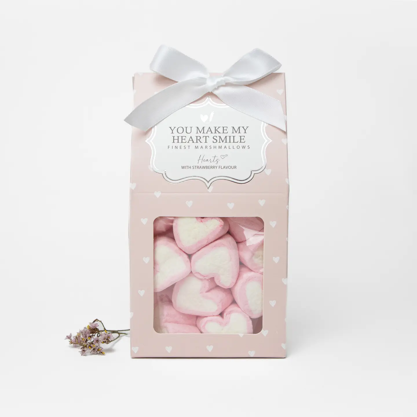 Zachte, roze marshmallowhartjes met aardbeiensmaak.